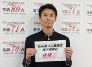 2026.02.19 【駅西校】県立工業高校合格!! 僕はマナベストに通って良かったと思っています。 分からないことがあったら一緒に考えてくれたり、分かりやすい解説をしてくれました。 先生たちのおかげでテストの点数も上がったし、自分の行きたい高校に合格することができました! 僕は礼儀を大事にしてきましたが、高校からもそのあたりを見られていると思うので、みなさんも意識してみてください。 大徳中学校 坂本さん 小学生・中学生・高校生対応の塾 【個別教室のマナベスト】石川県金沢市 << 前の記事 一覧に戻る
