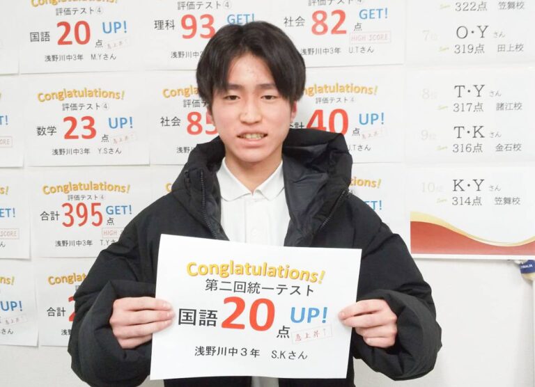 【泉本町校】英語25点アップ!!楽しく通ってやる気もアップ